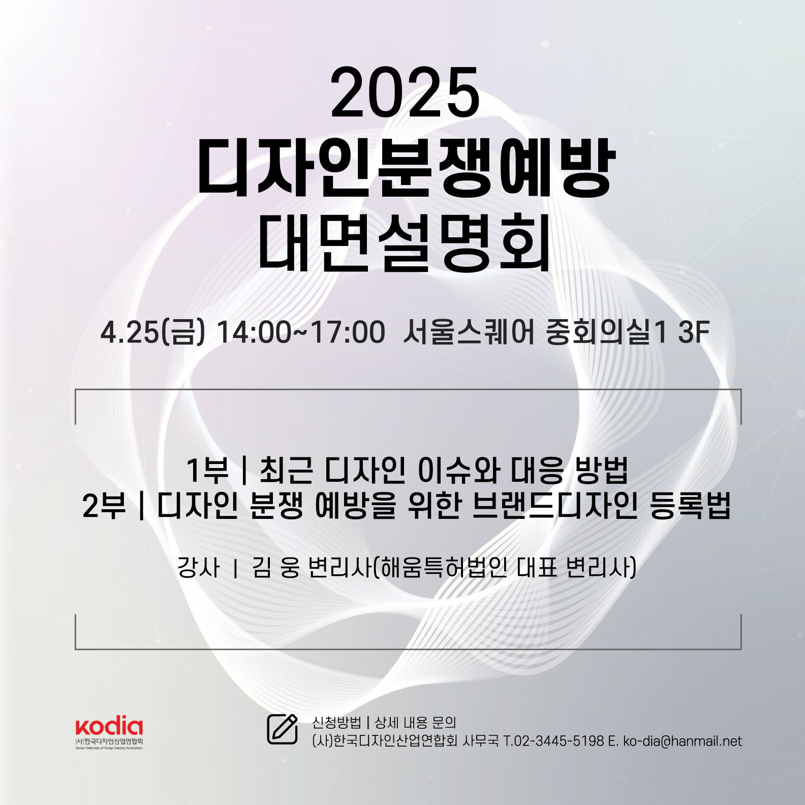 [2025년 디자인분쟁예방 대면설명회]를 개최할 예정입니다.